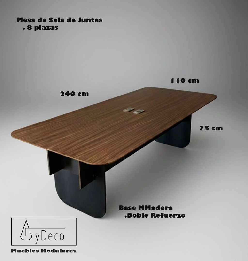 Mesa para sala de juntas 8 personas  con 3 Contactos y 2 USB puedes solicitarlo sin pasa cables. Marca GyDeco melamina  Resistente...