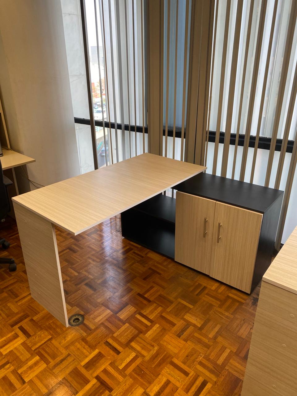 Escritorio en L "Escuadra" con Gabinete de madera de melamina todo natural y negro liso acabado satinado. Escritorio  1.20 x 60 Gabinete...